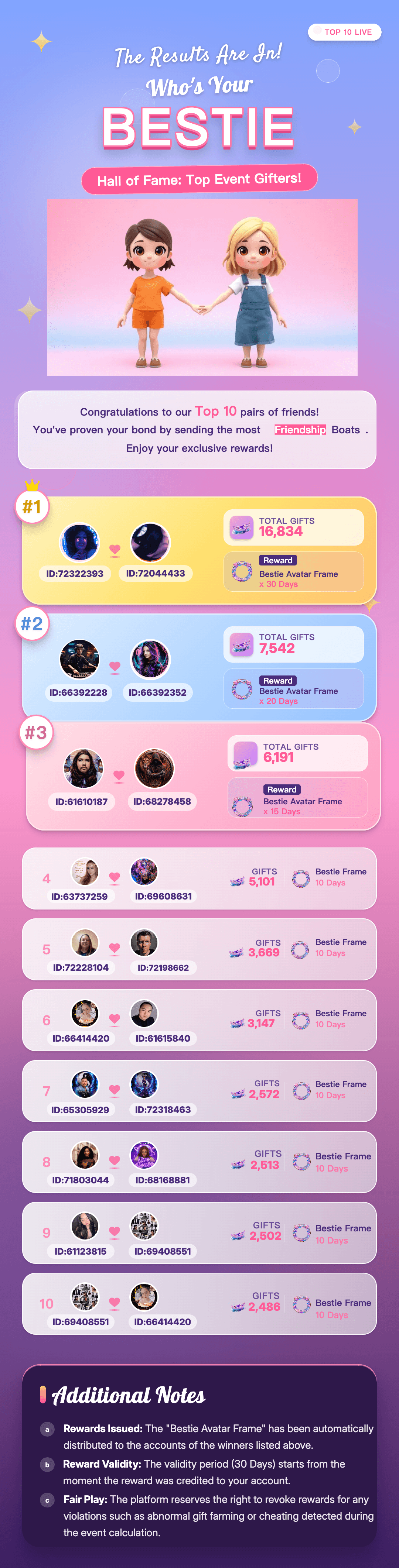 “Who Is Your Bestie” Rankings & Bonus Rewards